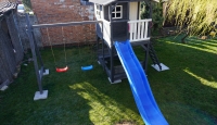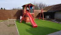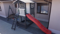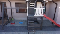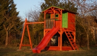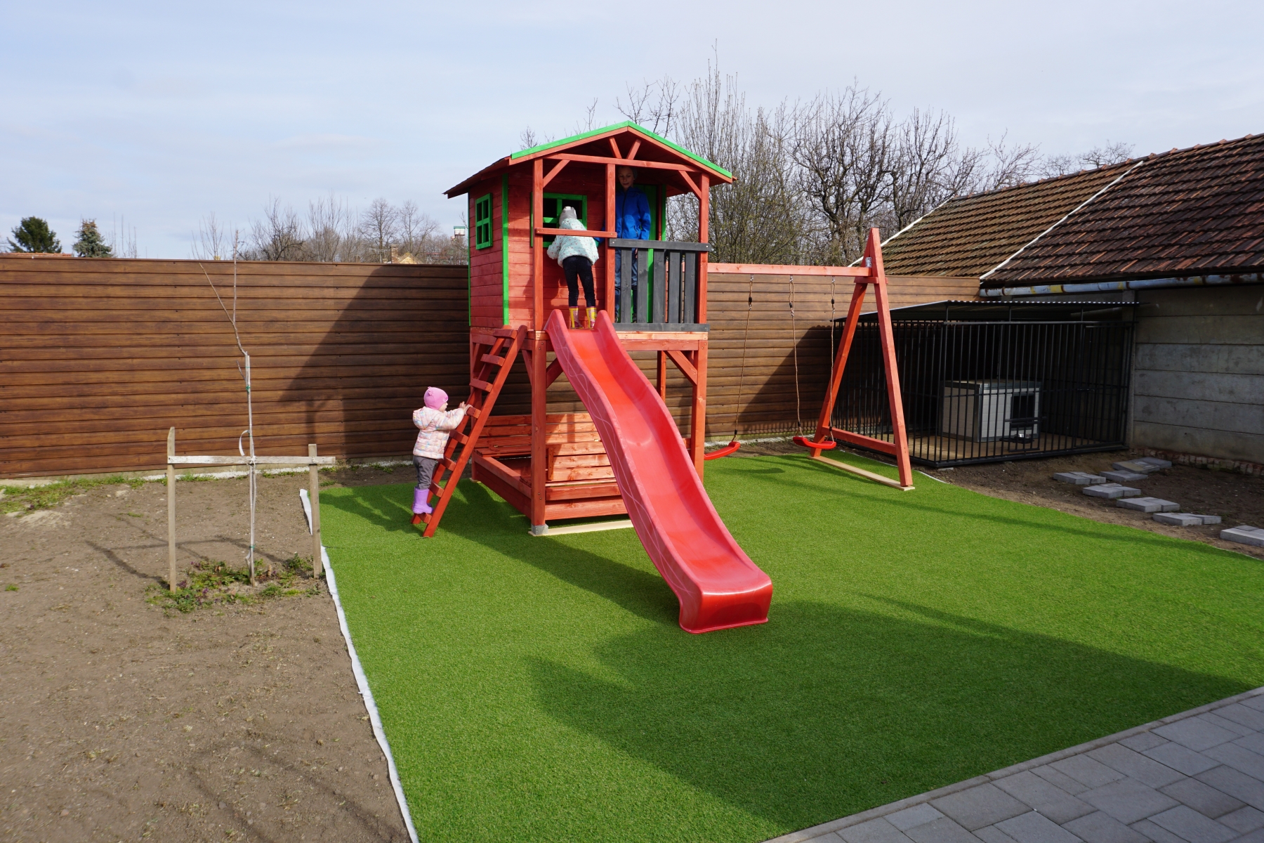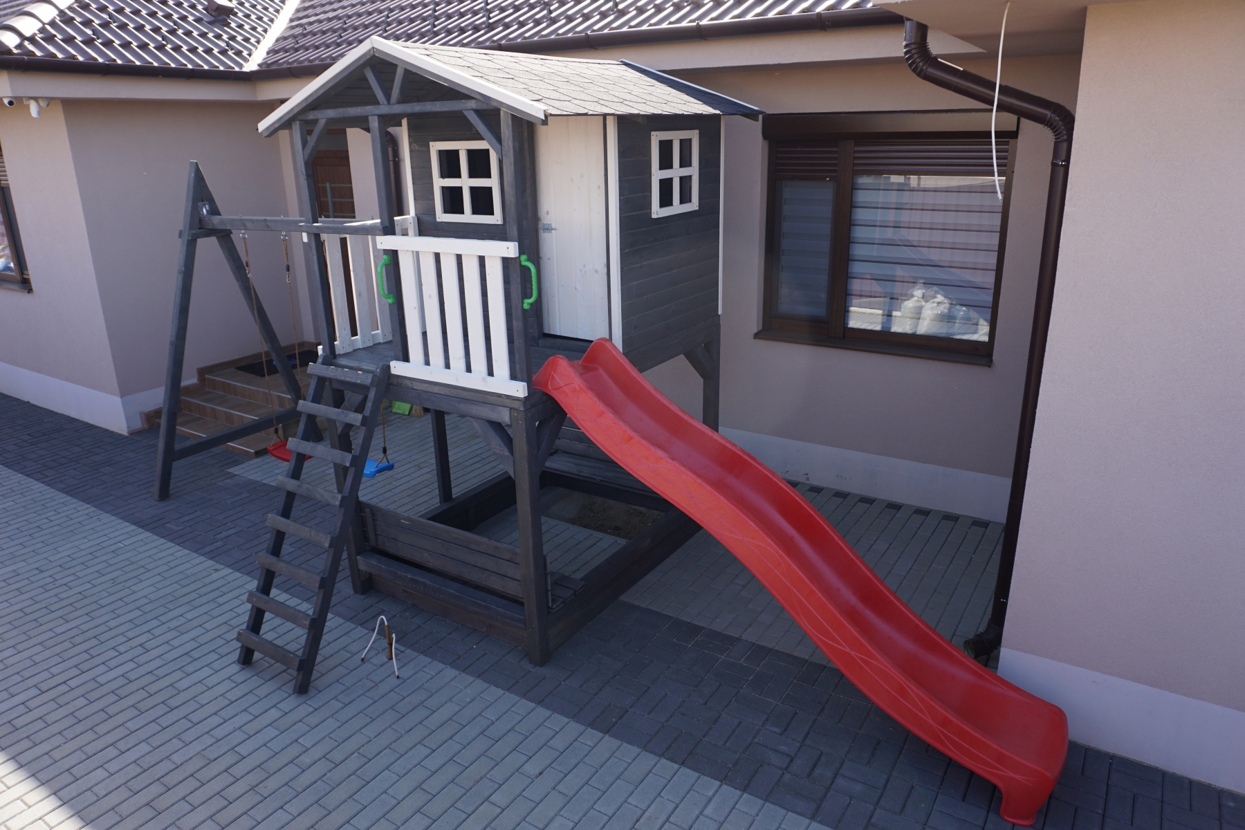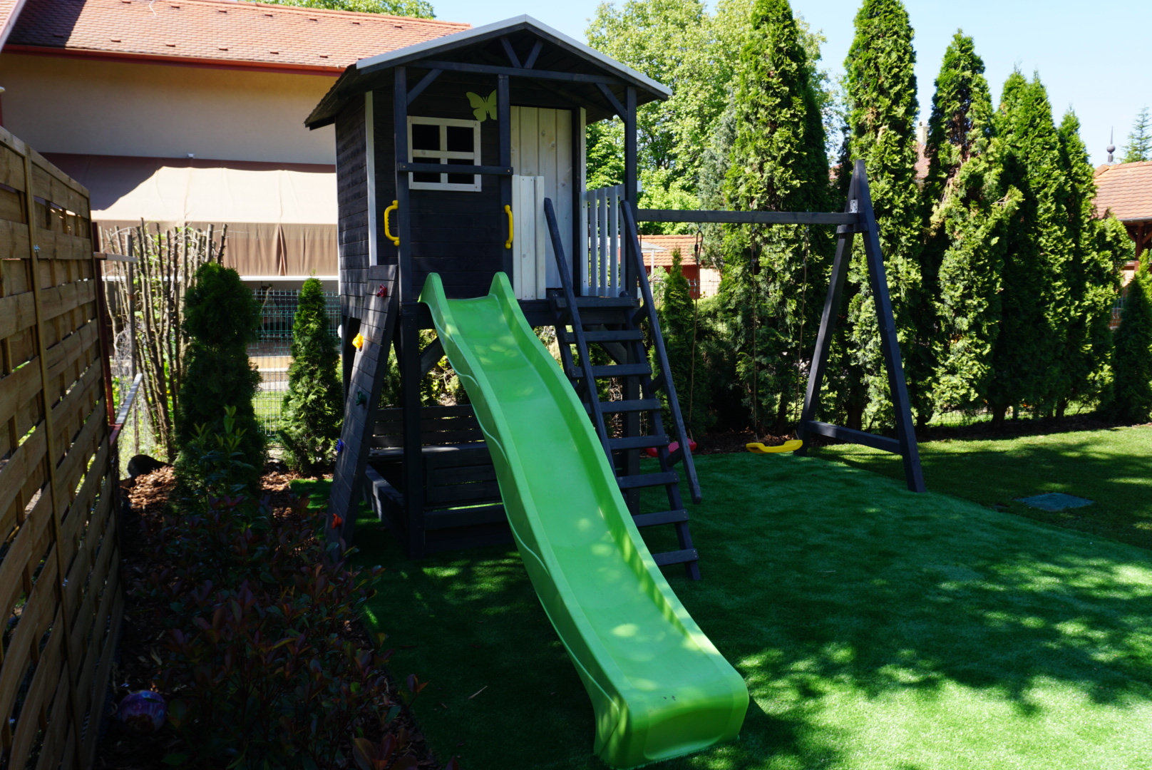 Tartós masszív szerkezet. Anyaga időjárás álló nemes jegenyefenyő . Felületkezelés 2 x vékonylazúrral.