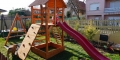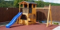Gyerek játszótér fából házikóval